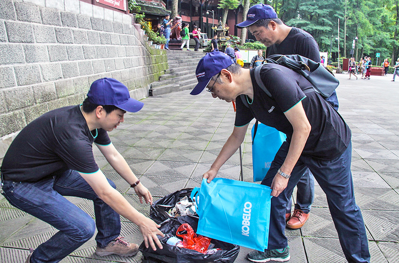 在青城山開展撿垃圾及健身跑活動