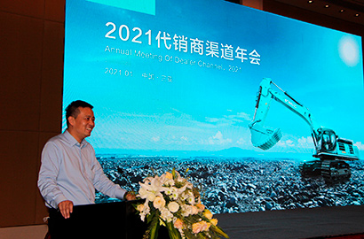 隨后神鋼建機(jī)(中國(guó))有限公司總經(jīng)理西岡基司發(fā)表了講話。西岡總經(jīng)理表示2020年在新冠疫情肆掠及外資品牌占有率下滑的情況下,神鋼建機(jī)仍然持續(xù)提升了銷量,這樣的優(yōu)異成績(jī)與代銷商的努力密不可分,并向代銷商表示誠(chéng)摯的謝意。神鋼建機(jī)制定了下一個(gè)五年計(jì)劃,勵(lì)志于最大化的提升品牌價(jià)值,成為在中國(guó)市場(chǎng)存續(xù)百年的優(yōu)秀企業(yè)。今后也將以結(jié)構(gòu)性改革和提升速度為手段,與各位代銷商攜手共進(jìn),一起成為終端客戶事業(yè)發(fā)展道路上的優(yōu)秀伙伴。